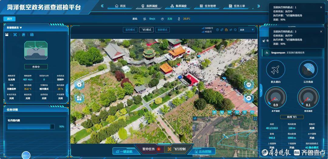 长鸿配资平台 菏泽特警低空巡检,科技护航牡丹节盛会